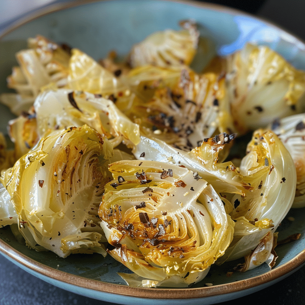 - Transfer the cooked cabbage wedges to a serving plate immediately so residual steam does not soften the crispy edges.