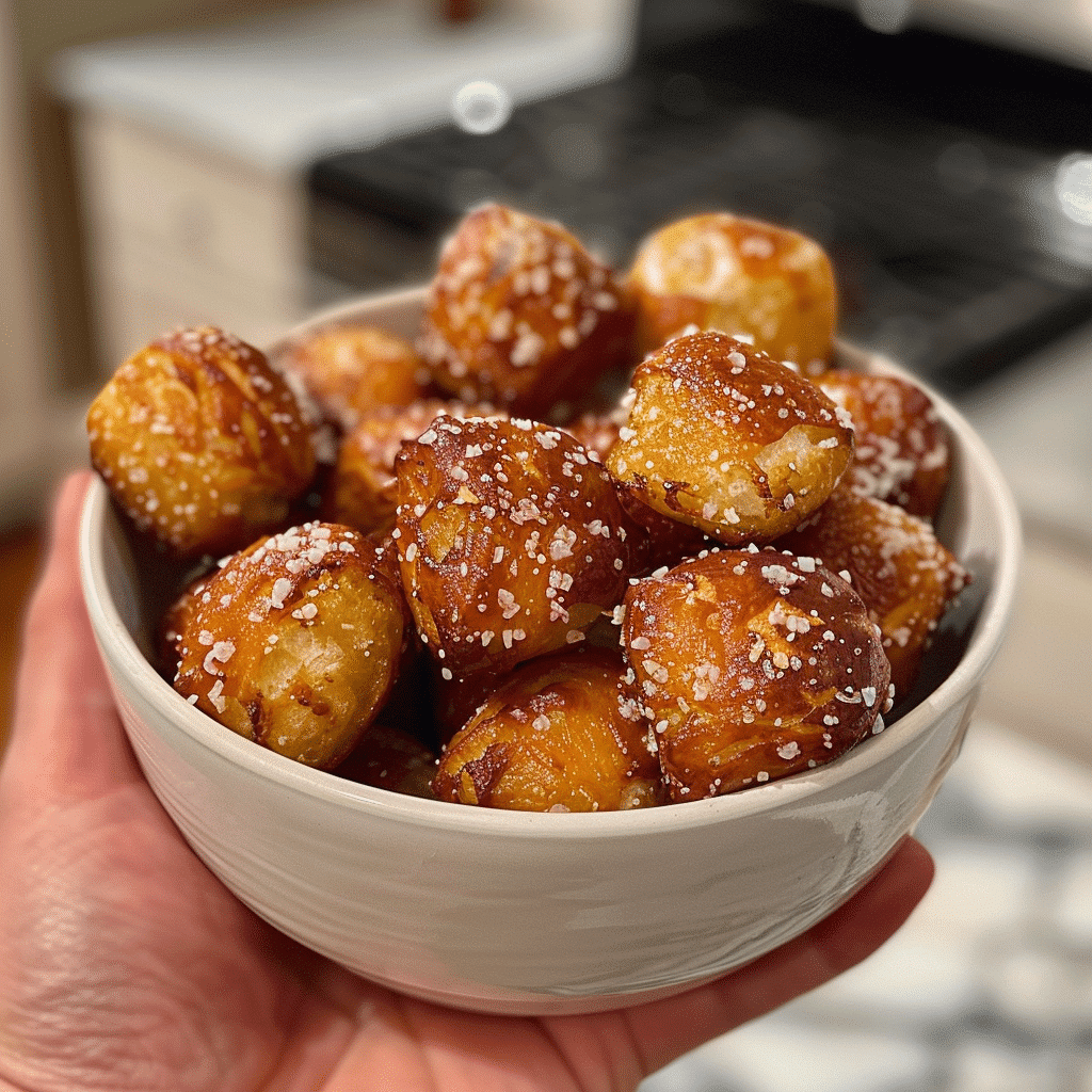 - Do not skip the baking soda bath: Even a 20-second bath changes the pH of the dough surface, triggering the Maillard reaction that creates the brown, glossy pretzel crust. Shorter is fine; longer than 45 seconds makes the bites taste slightly soapy.